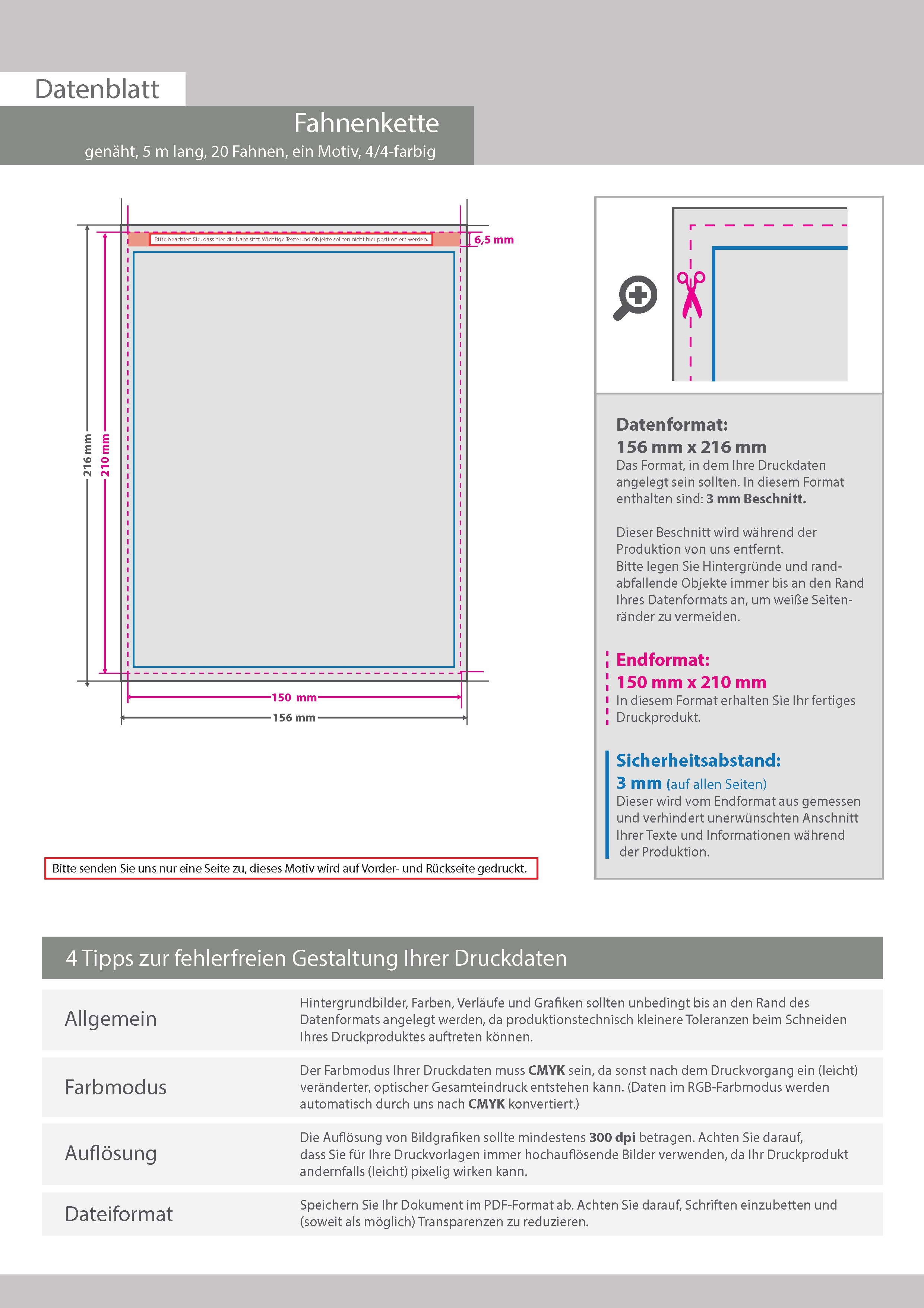 Fahnenkette genäht, 5m lang, 20 Fahnen, ein Motiv, 4/4-farbig beidseitig bedruckt