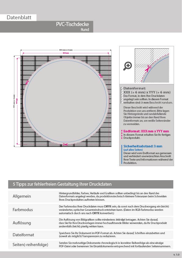 PVC-Tischdecke rund, einseitig 4/0-farbig bedruckt