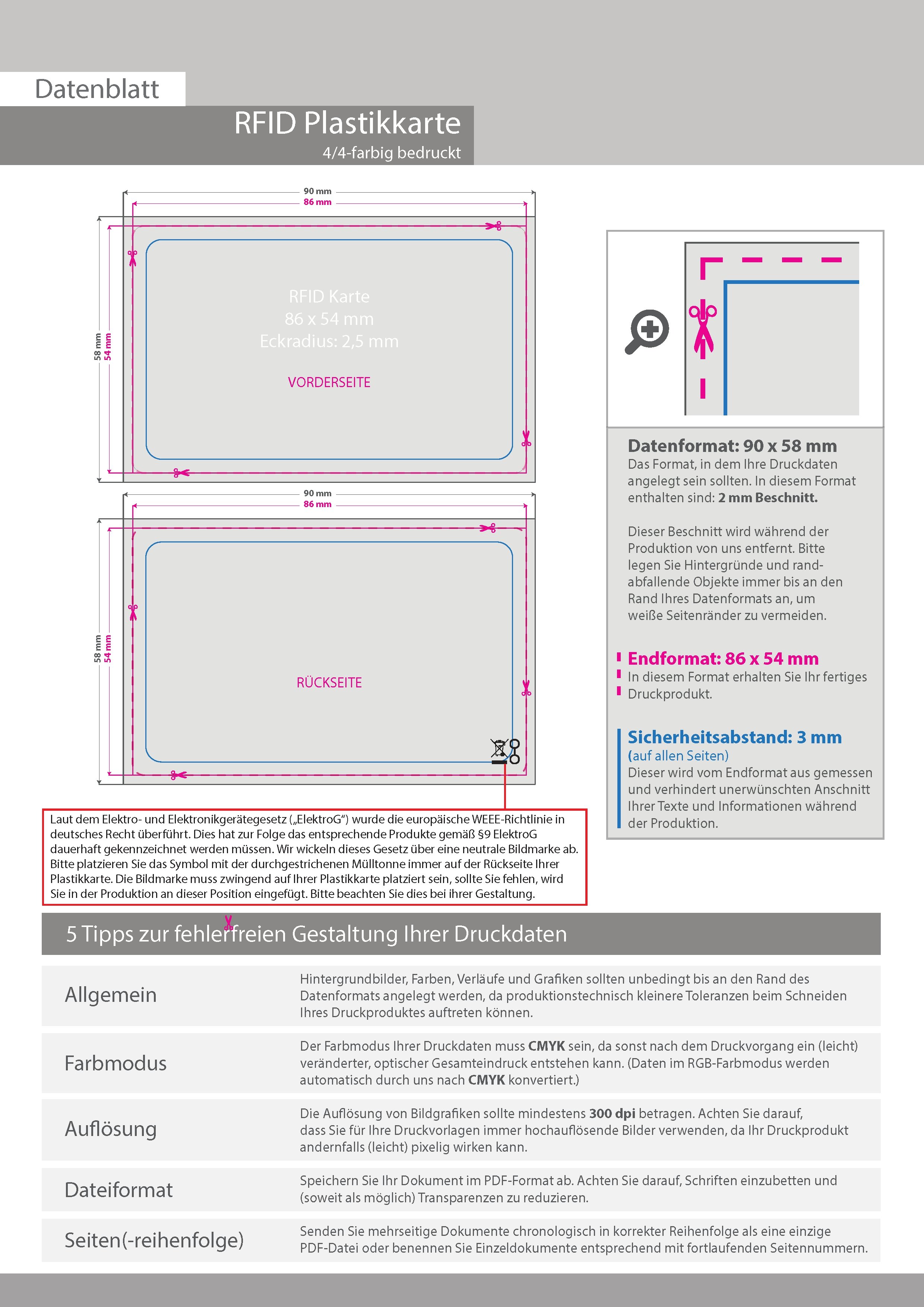 RFID Plastikkarte MIFARE 1K (Fudan F08) auf weißem Hintergrund, 4/4-farbig CMYK