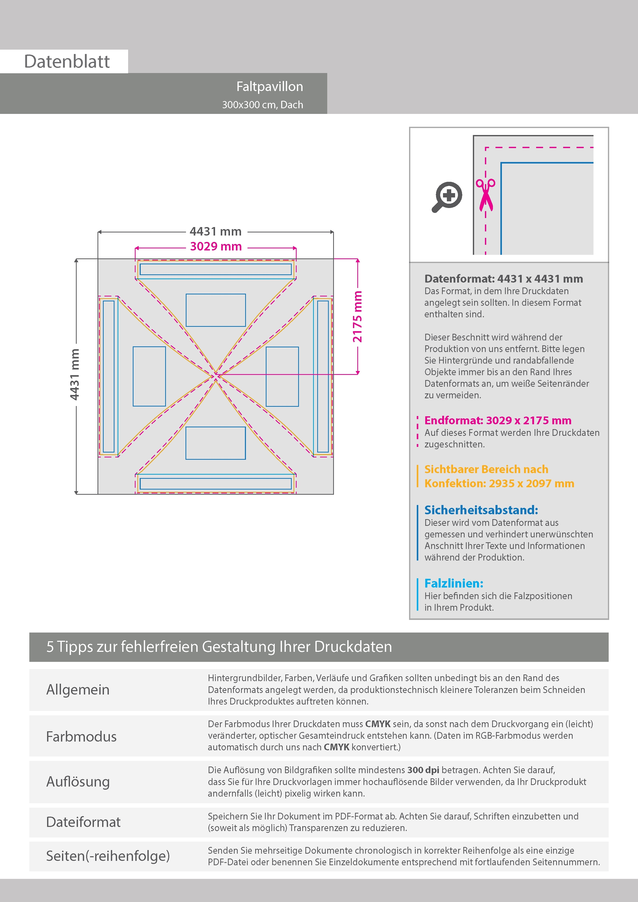 Ersatzdruck Dach für Faltzelt/Faltpavillon 300 x 300 cm, einseitig bedruckt